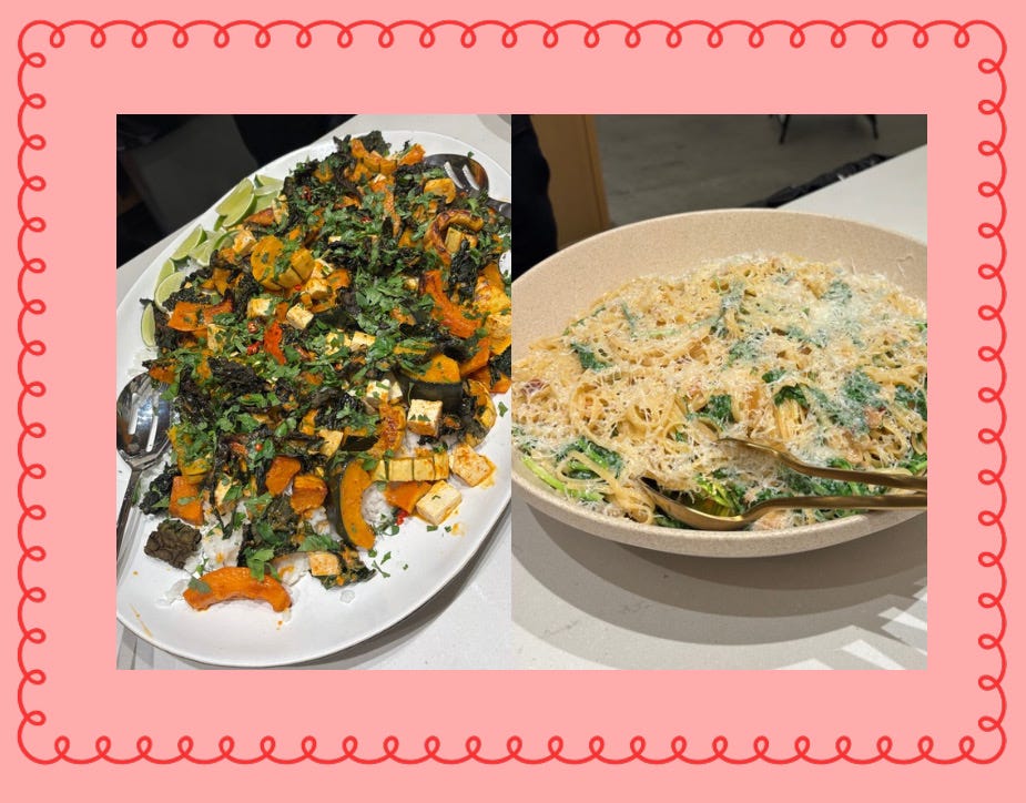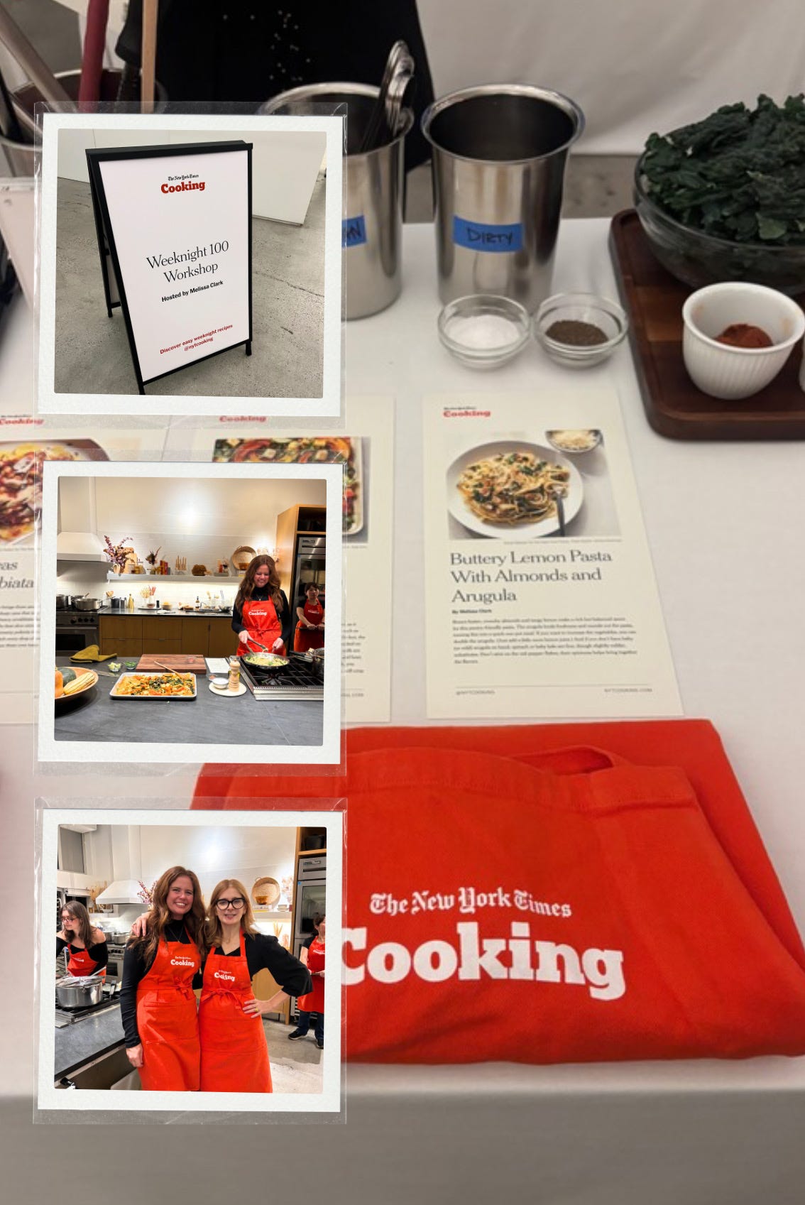 The highlight of the night was that Melissa Clark — the amazing chef and cookbook author — was teaching the class herself. I’ve always loved her recipes and cookbooks, so it felt really special to learn from her in person. We made a sheet-pan coconut curry with squash and tofu, and a buttery lemon pasta with almonds and arugula. Both were absolutely delicious!