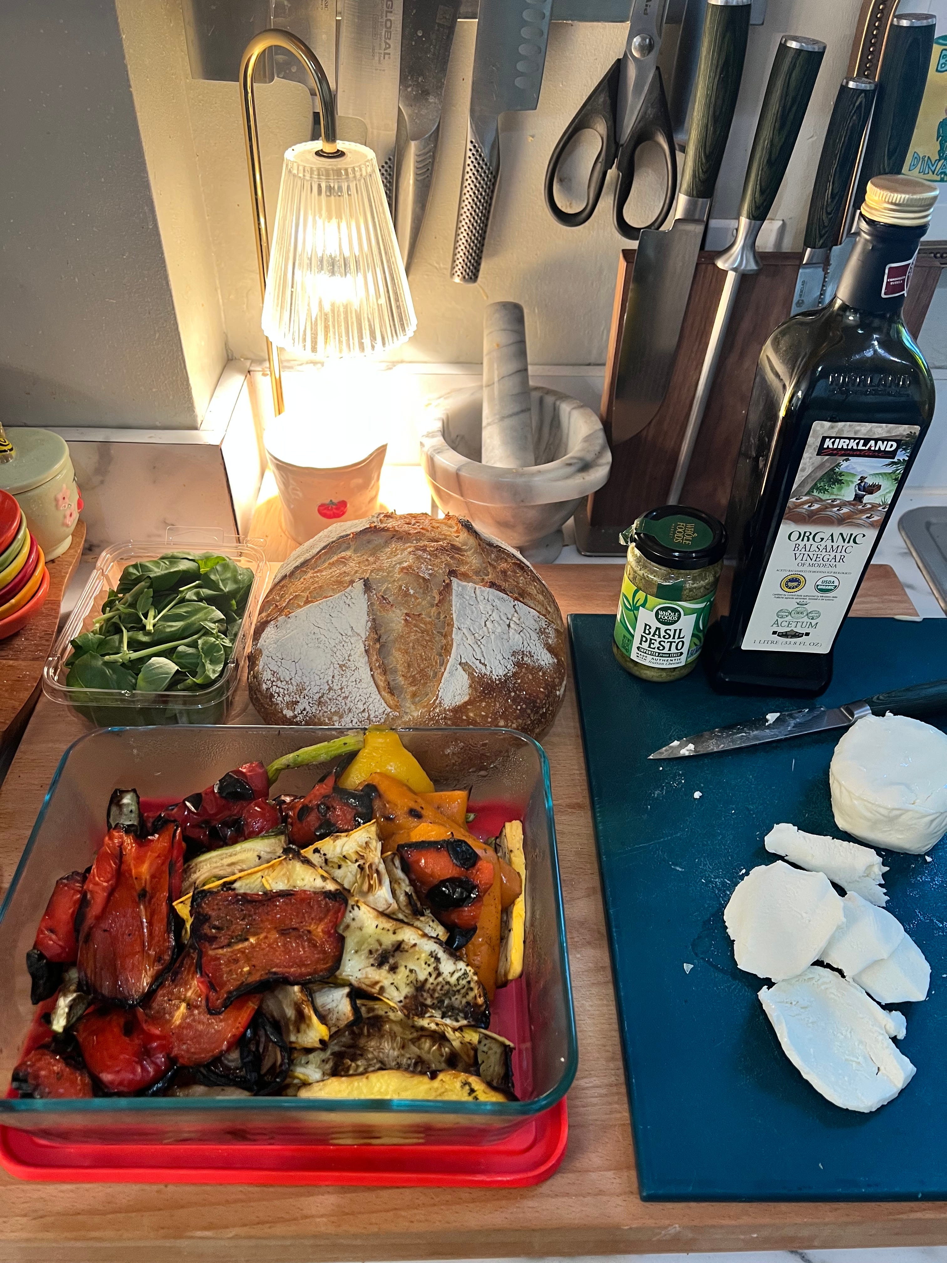 My number one tip for the perfect beach day is bringing everything you need with you. Even if I feed my kids right before the beach, they are somehow starving every time we arrive. I like to pack sandwiches, drinks, and a bunch of different snacks so once we get on the beach we don’t have to leave, I made paninis for everyone. My kids had chicken and cheese paninis. I put them in a bento box because my kids think it’s so fun to eat out of them. I made my sister and I a veggie panini, consisting of grilled vegetables, pesto, mozzarella cheese, and fresh sourdough bread.