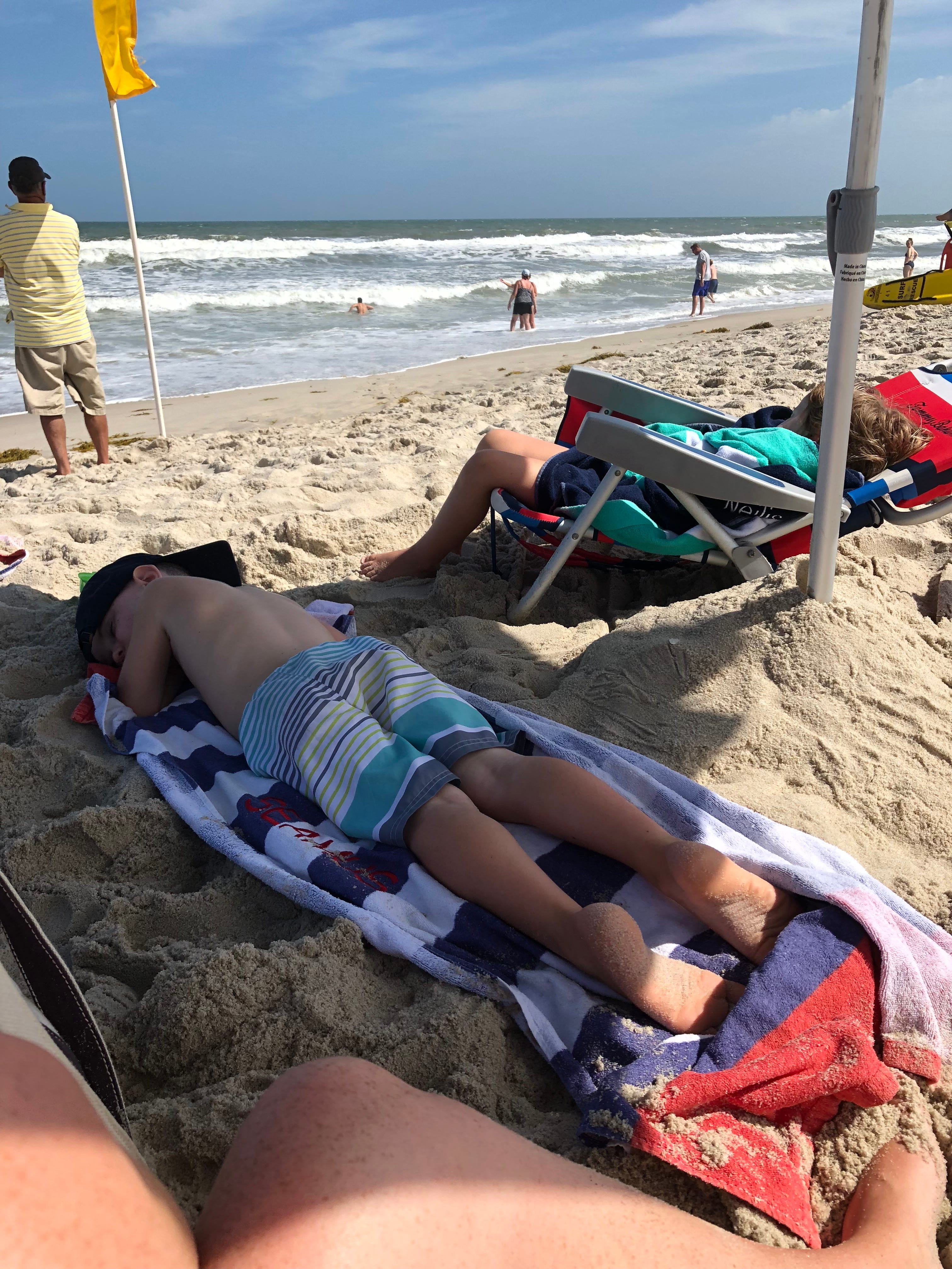 There are definitely challenges to taking young kids to the beach but I feel lucky because my kids have always been great beach nappers.