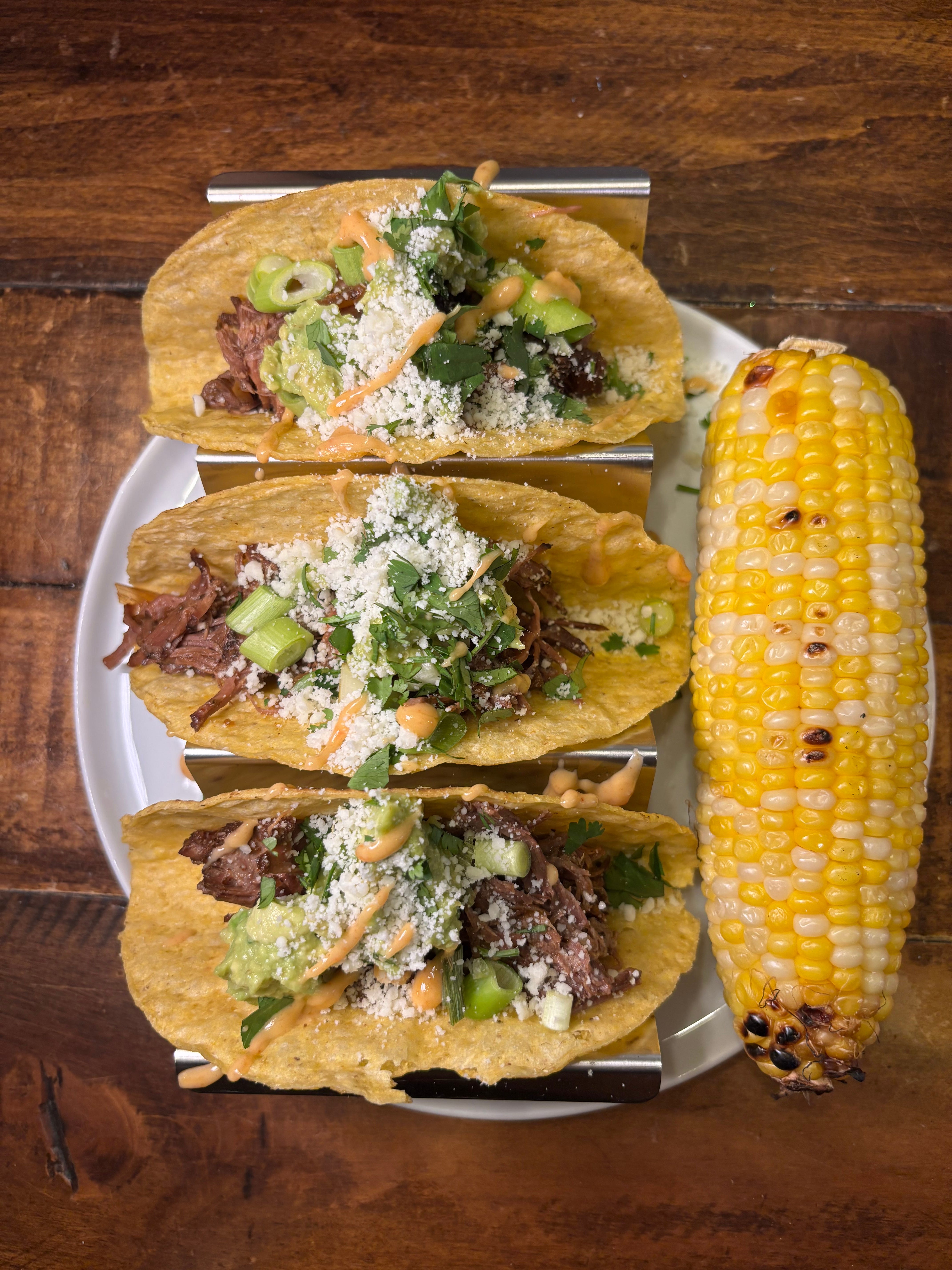 I love a crockpot dinner on beach days because I’m usually exhausted by the time we get home. This dinner came together so quickly and my kids love tacos, so it was perfect!