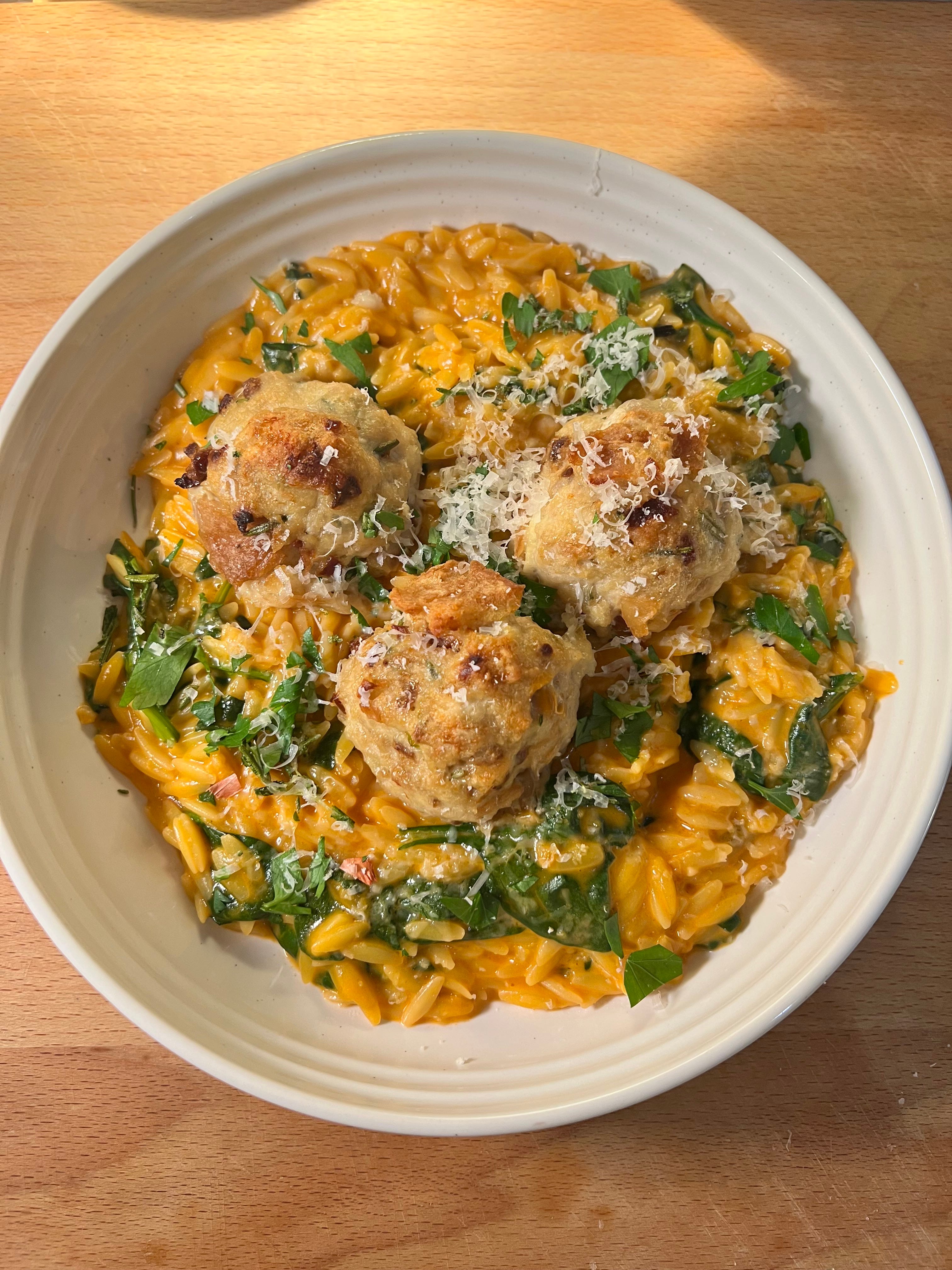 My 5/5 pic from this week was the baked rosemary chicken meatballs! If I’m being honest, this dinner was not a huge hit with my kids. My daughters, who are more adventurous eaters, didn’t mind it but it was still not their favorite. On the other hand my husband, sister, and I loved it. So if you plan on making this meal I think it would be perfect for date night. It also had a lot of steps so was annoying to cook after being at the park all afternoon and having 2 kids at my feet while doing it.