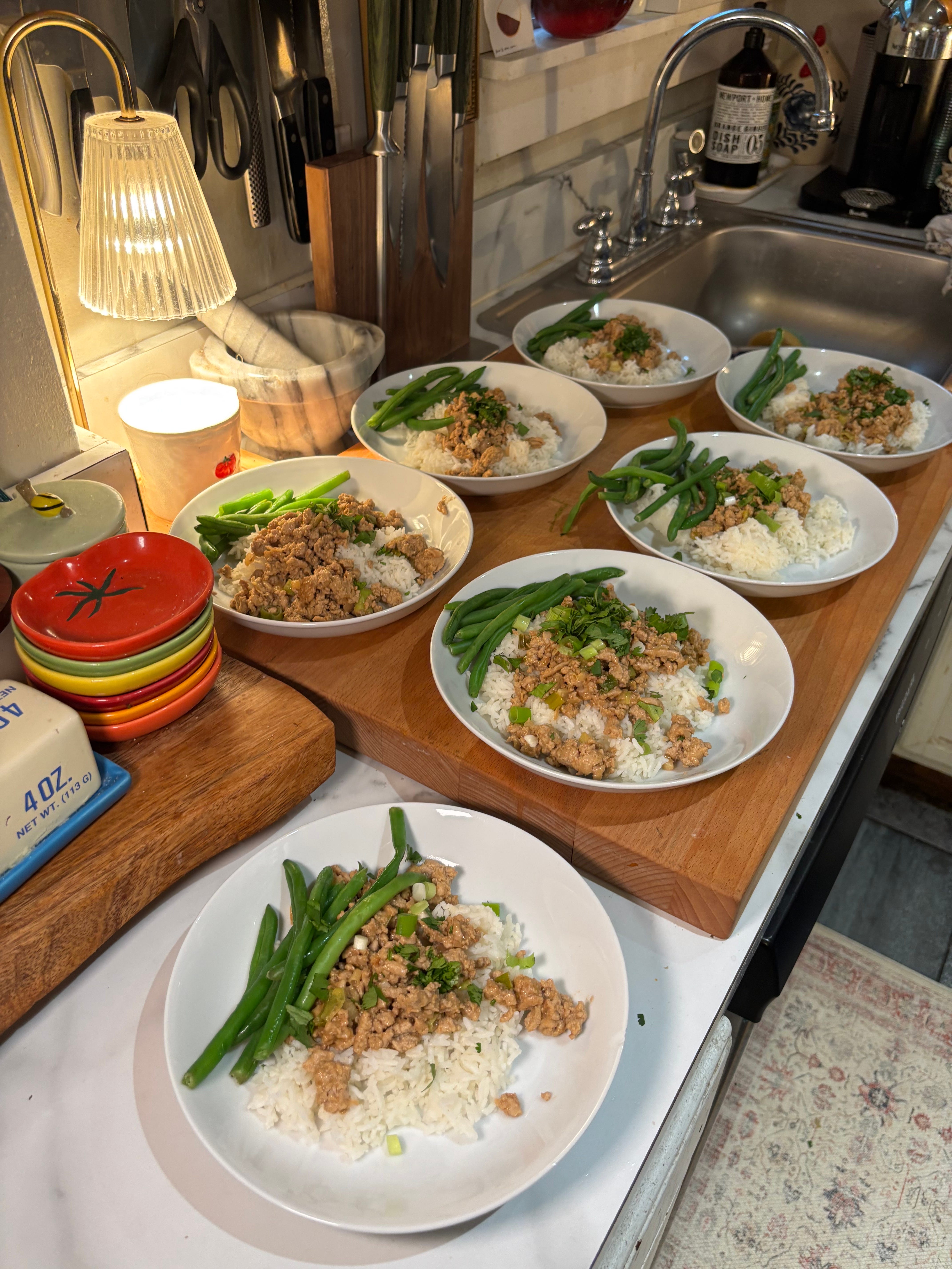 This peanut butter ground turkey stir-fry was another really quick dinner. I always make my rice in a rice cooker (one of my favorite kitchen appliances), so the chicken portion came together in under 20 minutes! I served it with string beans—my go-to vegetable side dish!