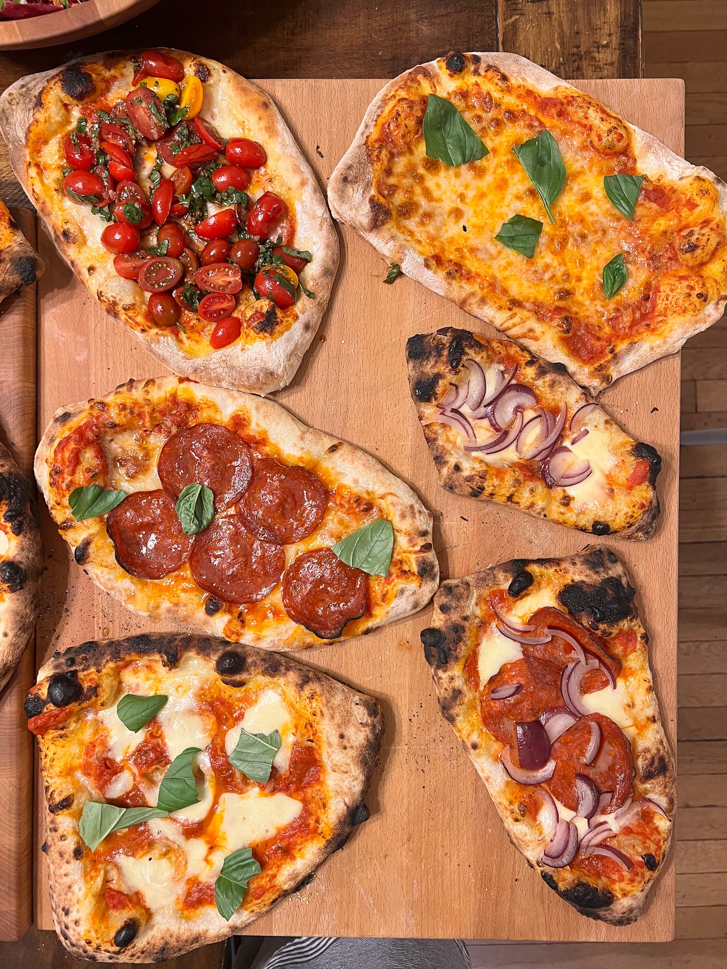 About five years ago, I went through a serious homemade pizza phase. Every Friday, I would make big batches of dough in my KitchenAid and invite my family over for pizza night. For some reason, I eventually stopped the tradition, but last week I realized how much I missed it. My husband happened to be off on Sunday night, so we decided to bring it back. We dusted off our massive pizza oven and made a whole variety of pizzas!