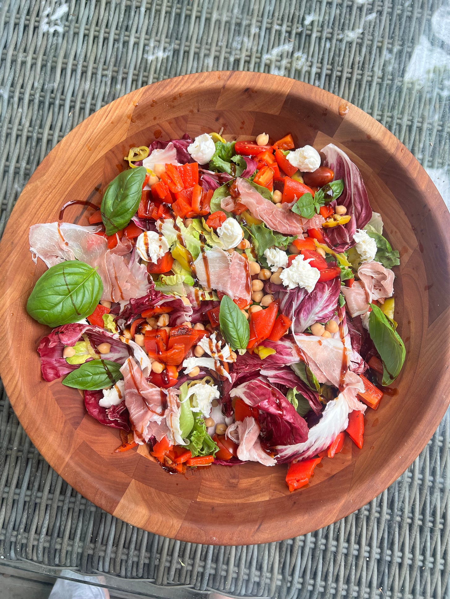 I always love pairing pizza night with a big salad. Usually, I stick to something simple like arugula or a homemade Caesar, but I recently bought the Wishbone Kitchen cookbook and knew I had to try her Italian Chopped Salad. My kids wouldn’t touch it—but honestly, it was absolutely delicious!
