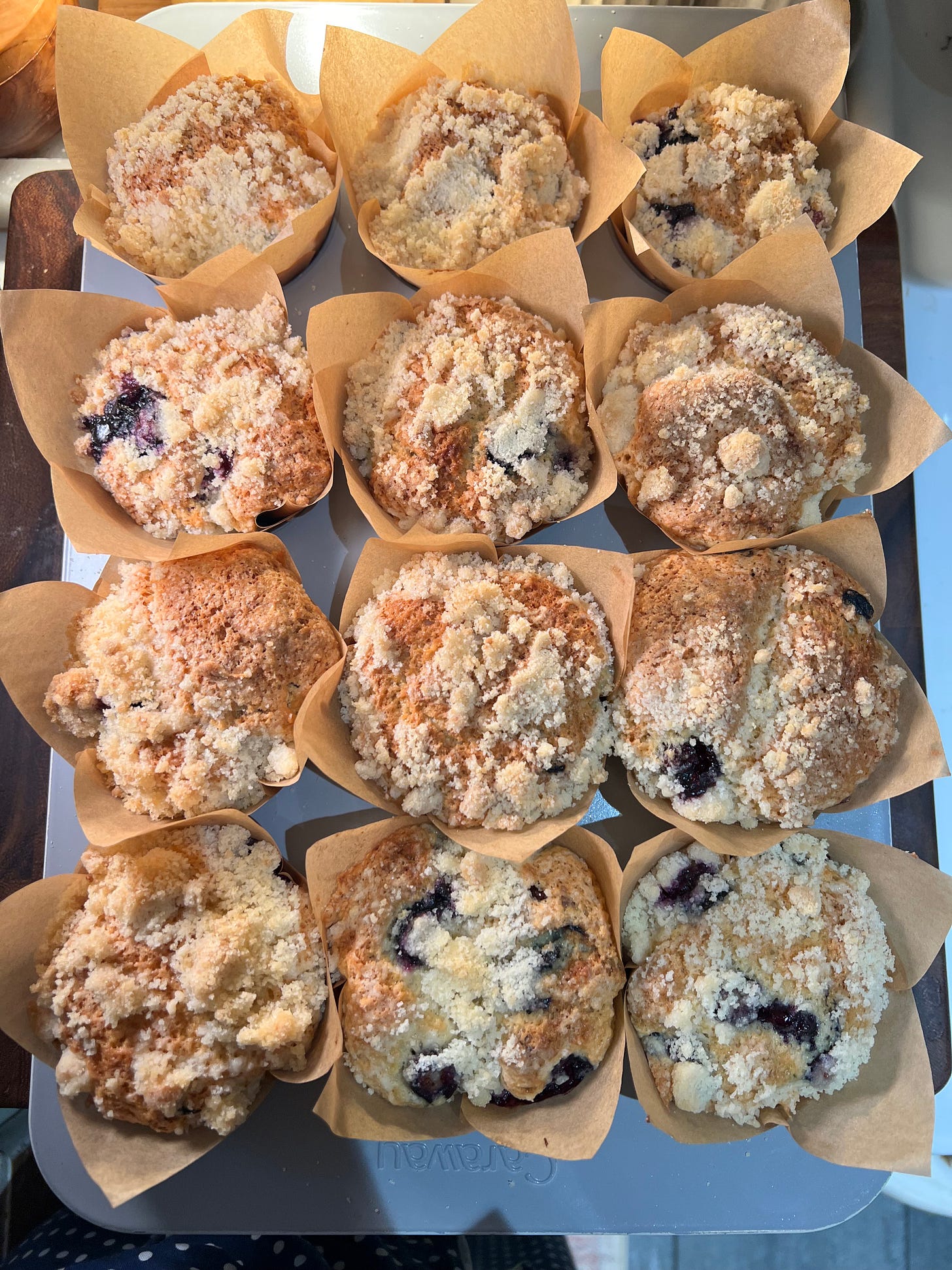 Sourdough Blueberry Muffins with Crumb Topping