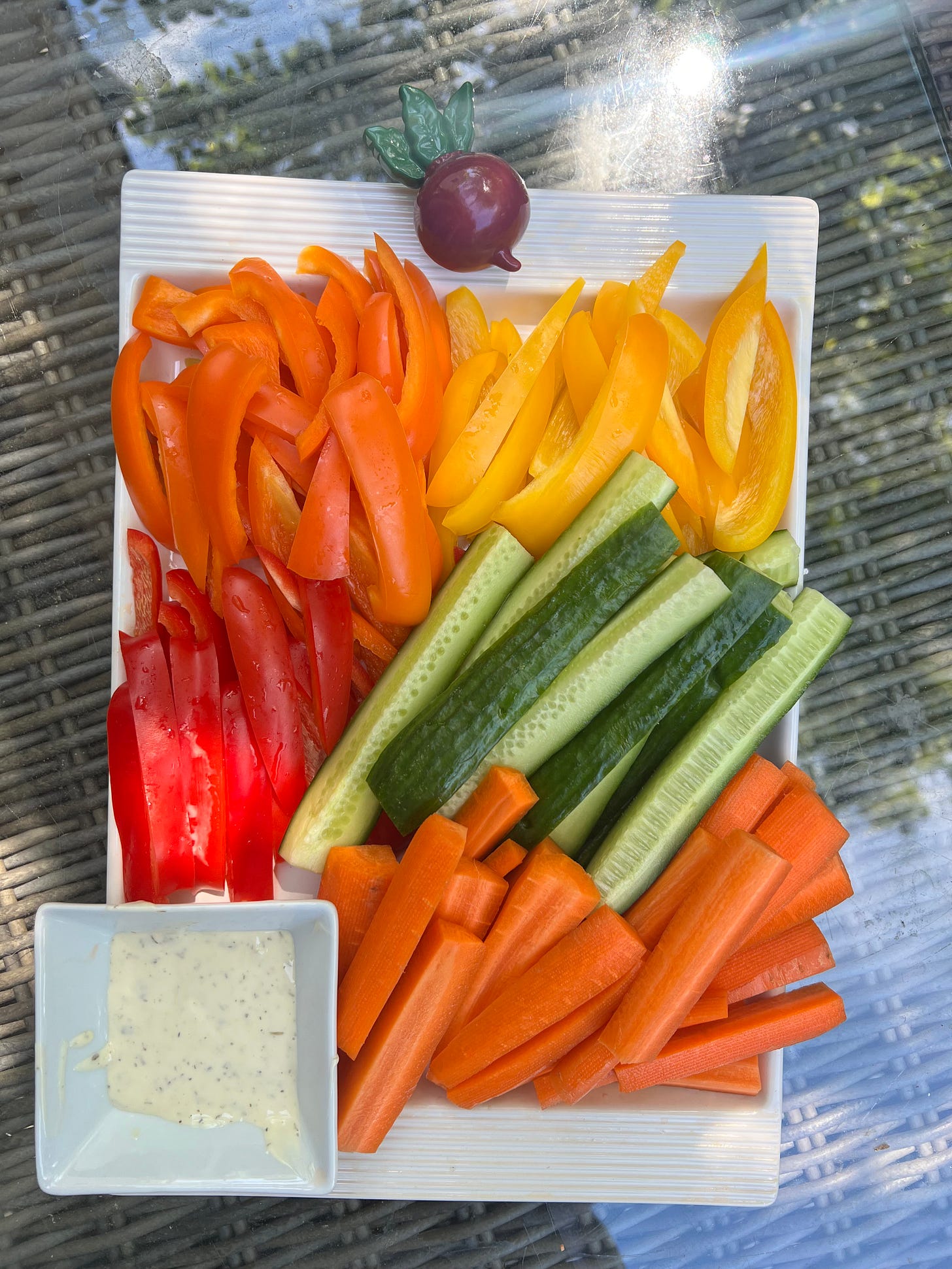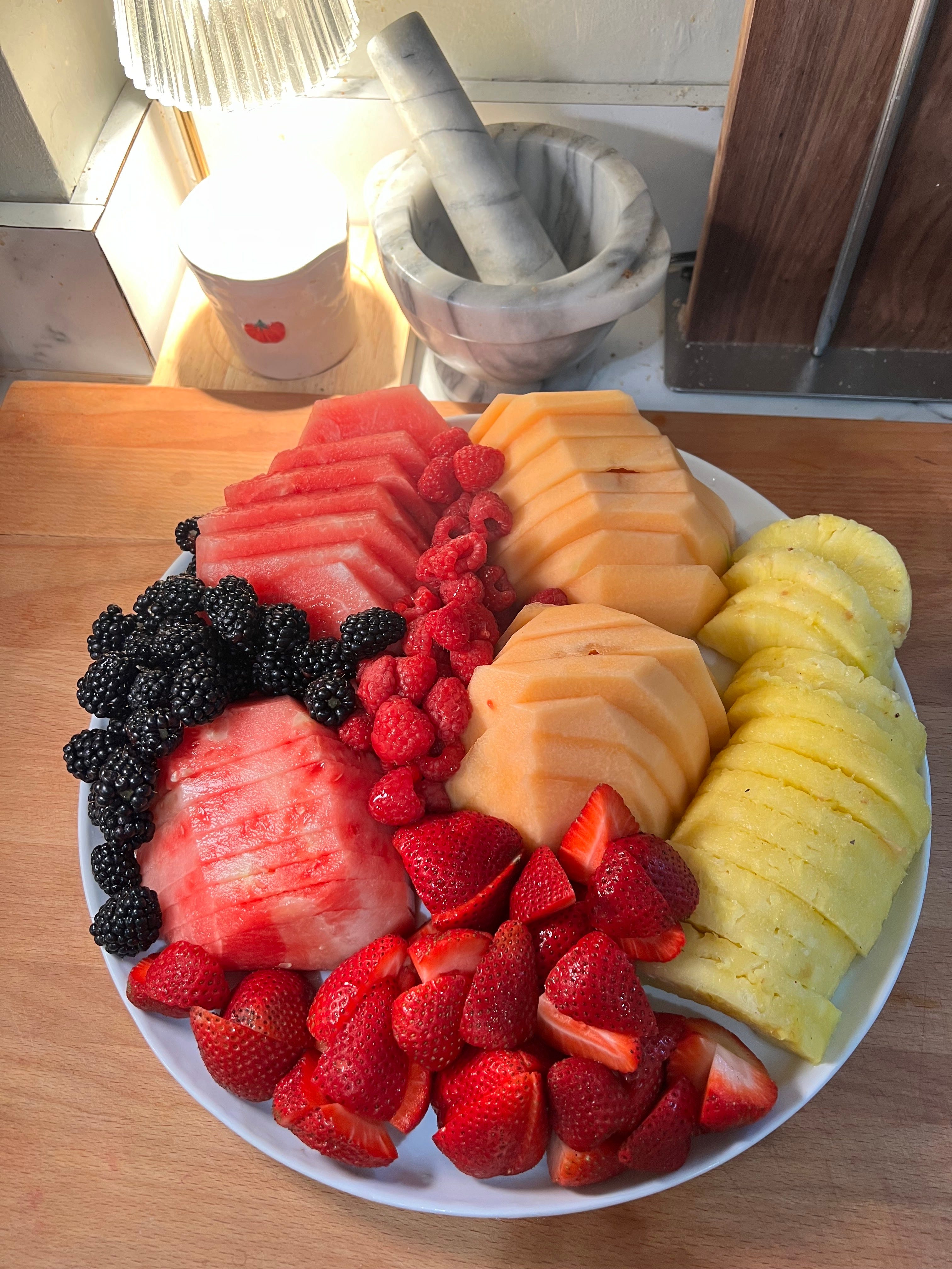 One of my favorite things to do when my kids get home from school is put together a fruit and veggie tray. I love creating a little grazing station for them—something healthy they can pick at before dinner.