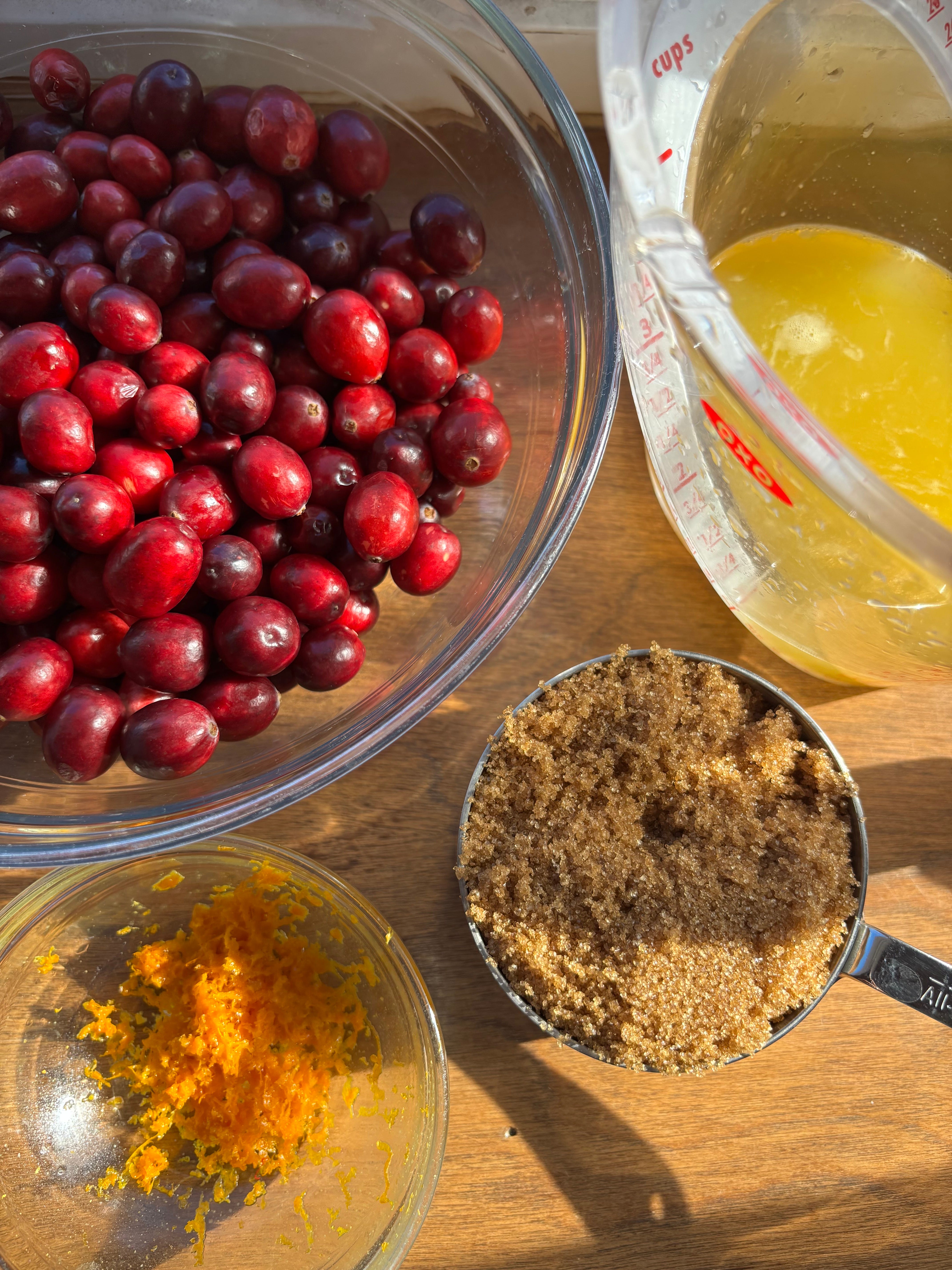 Add the cranberries, orange zest, orange juice, brown sugar, salt, and pepper to a medium saucepan.