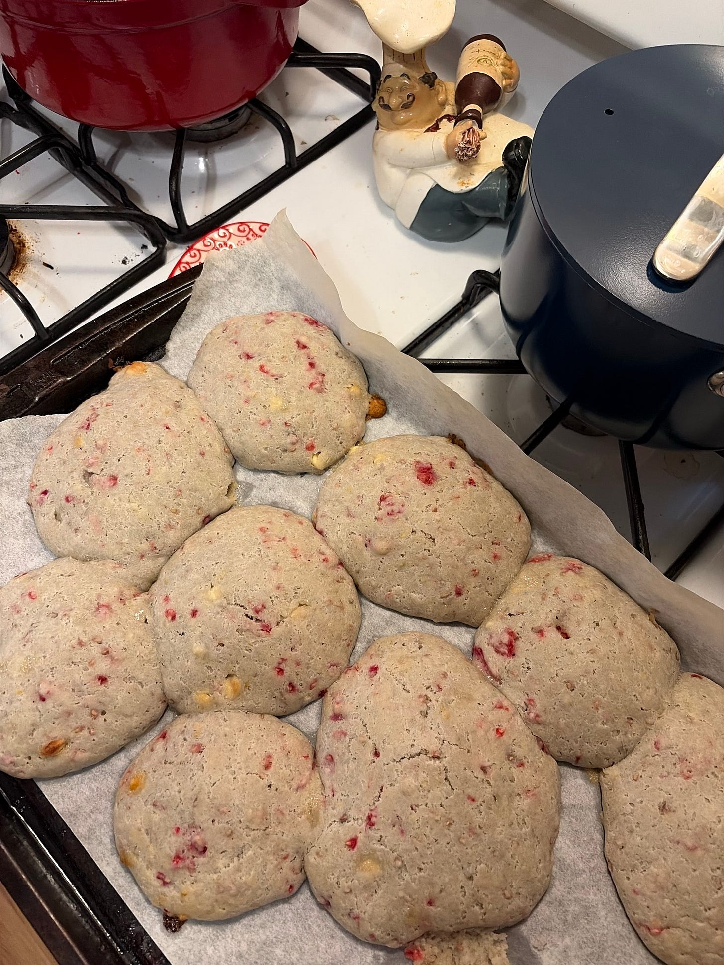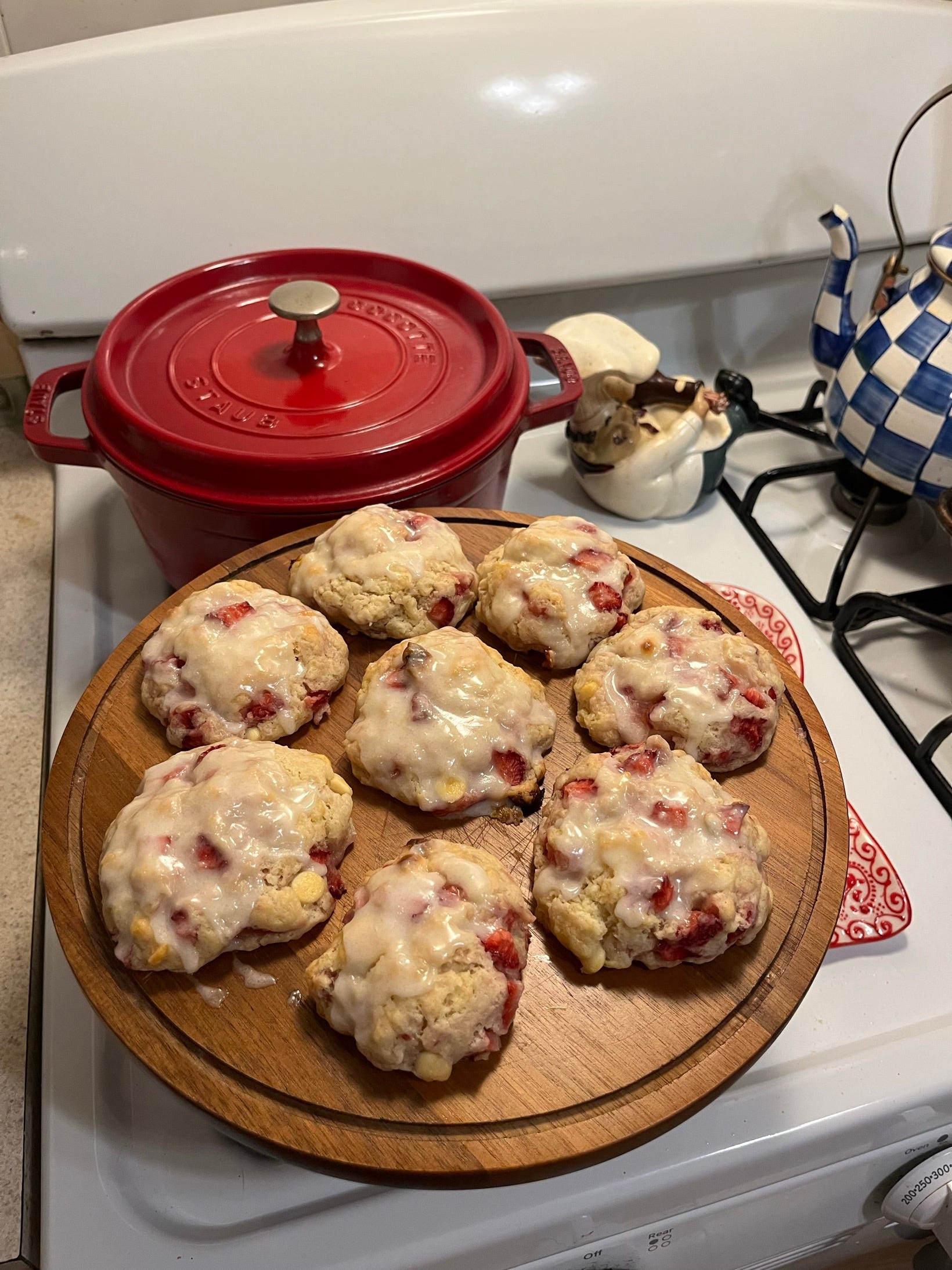 Before making the muffins she was planning on making scones. She has made scones a couple times recently and each time they have been delicious and so cute. I’ll insert a pic here: