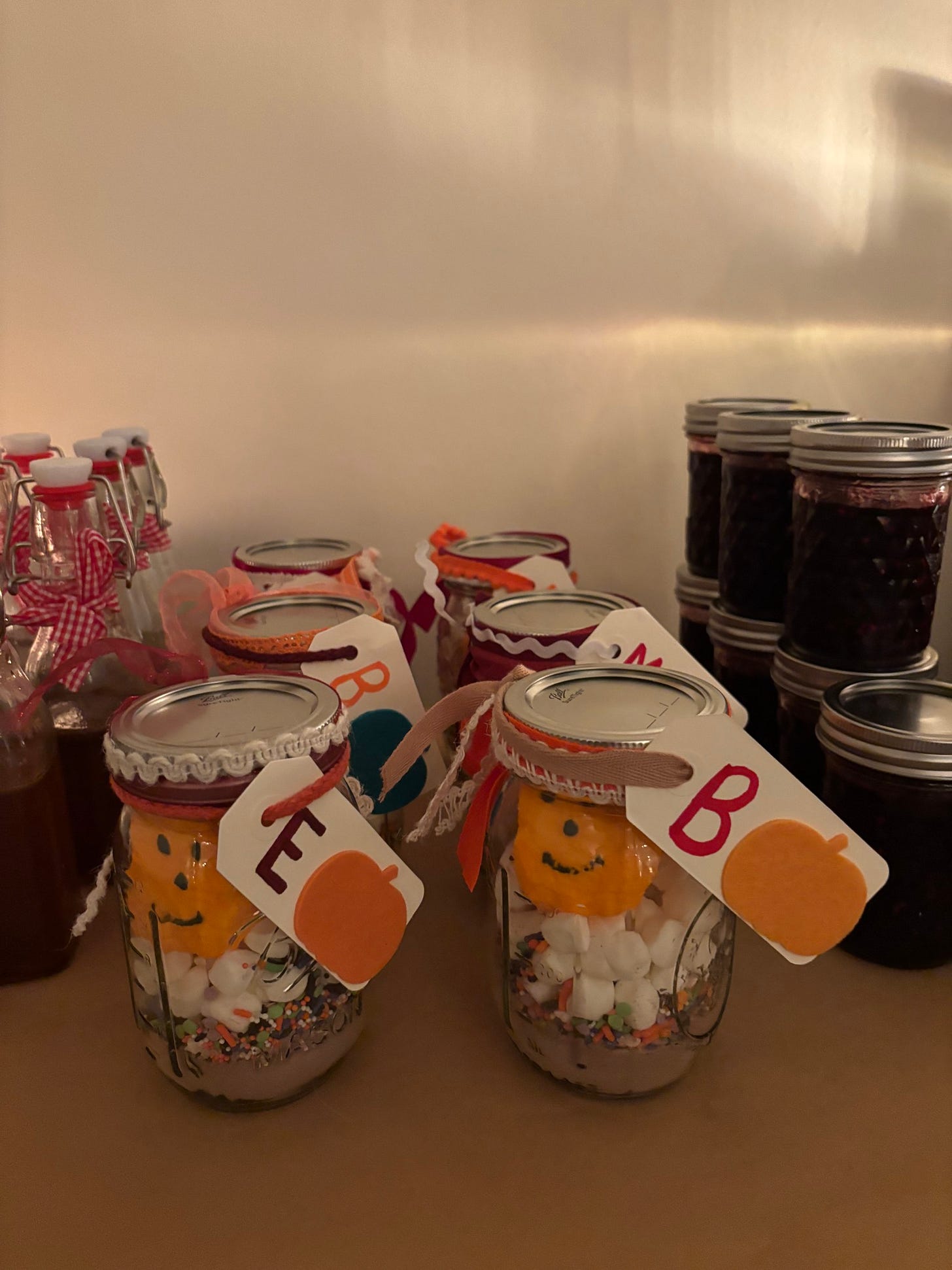 Okayyy next up my bff Theresa made really cute Halloween hot chocolate kits. Here’s a link if you want to make something similar. hot chocolate jar