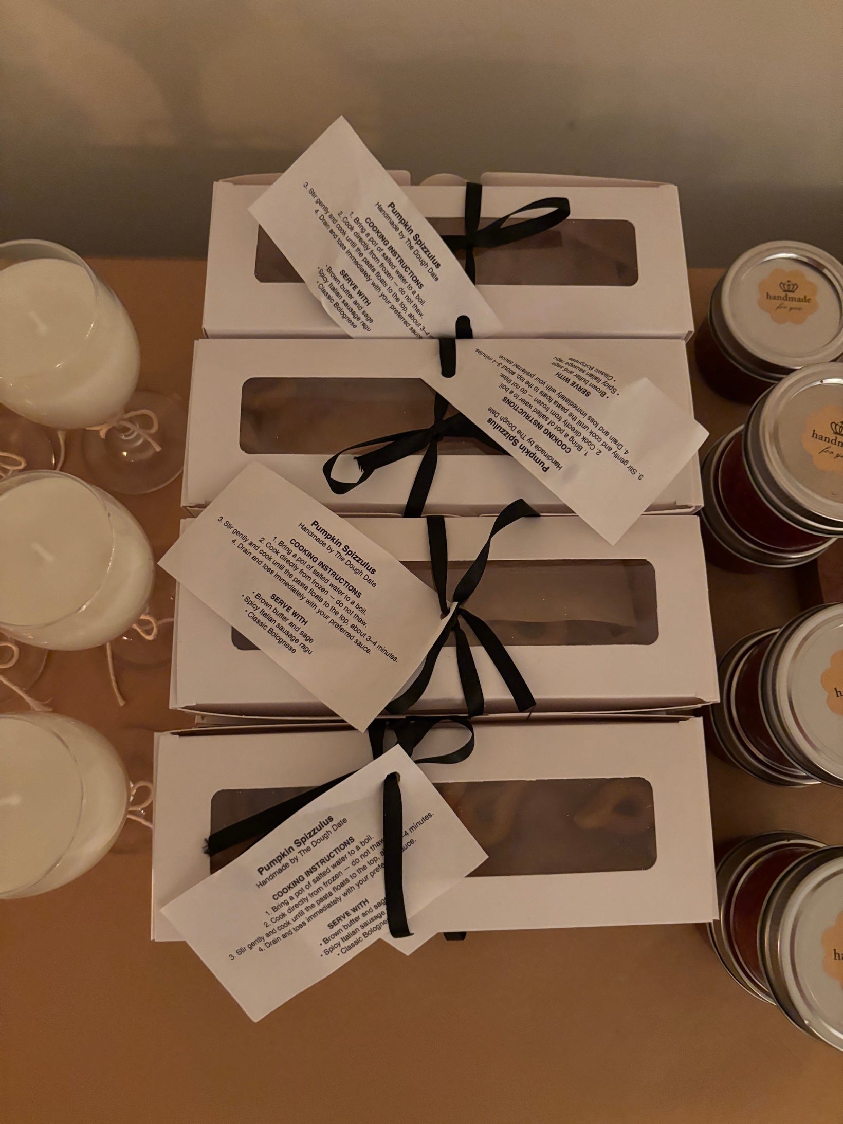 Starting a pasta business means lots of experimenting, and I love getting real feedback along the way. I just finished setting up my pasta prep kitchen in my family’s basement and wanted to break it in with something seasonal and meant to be shared. These pumpkin spizzulus are made from a semolina dough infused with roasted pumpkin, garlic, nutmeg, and cayenne, which to me is fall in pasta form. I froze and boxed them up so my friends could cook them themselves, the same way you’d grab something from a local market. It felt like the right way to kick off autumn: small batch, handmade, and shared with people I love!