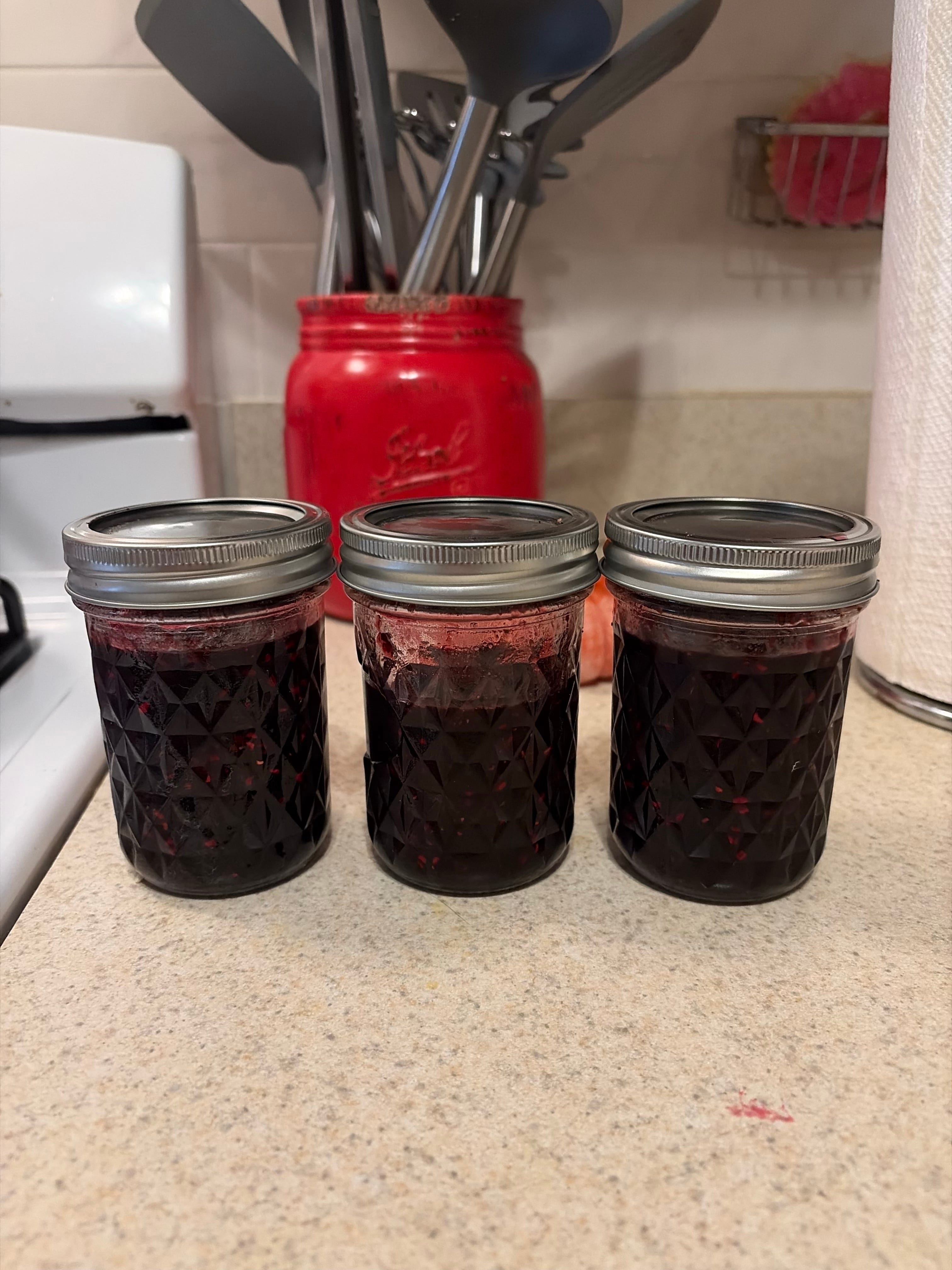 We are roommates and when she was starting the jam she was very nervous and intimidated haha. It came together so easily! She said she just went on tiktok and watched jam making videos. She used rasberries lemon and sugar and it came out so delicious.