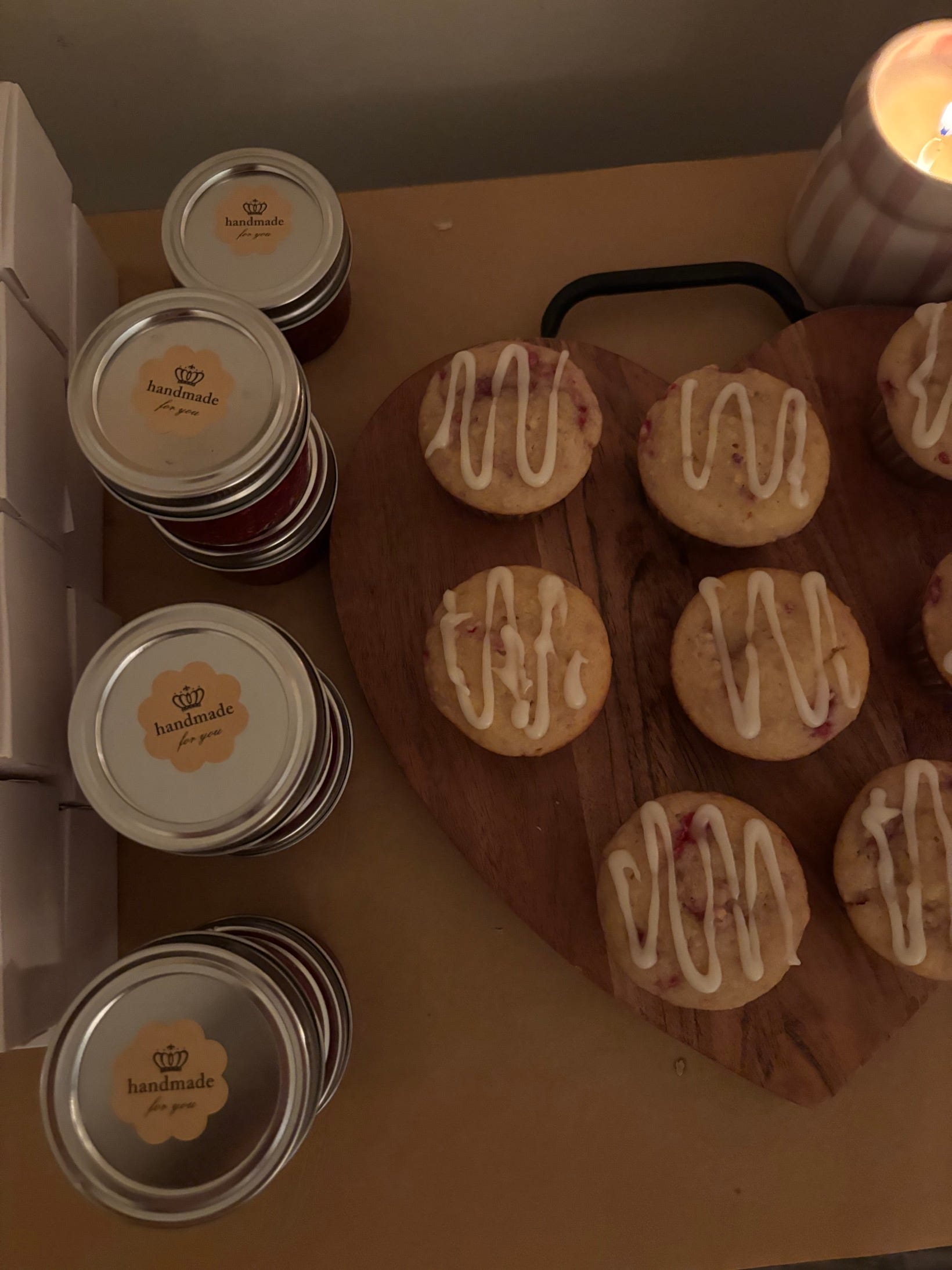 Okay next up my best fried Emily made the cutest raspberry jams with muffins