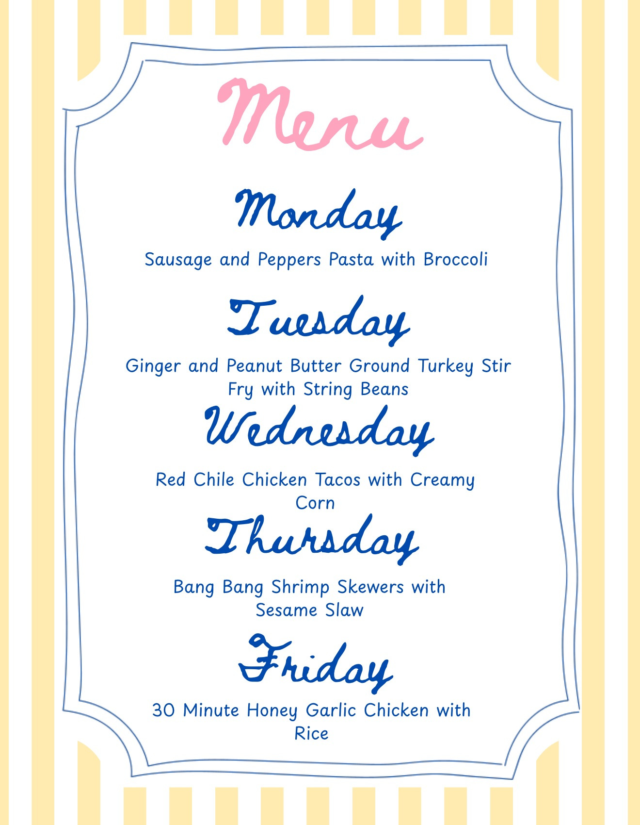 Thank you for making my family a menu this week so I don’t have to