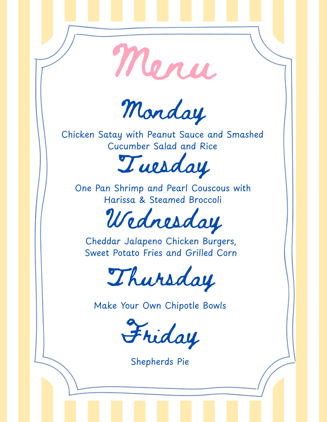This week, I’ve included two grill-friendly dinners—perfect for enjoying the outdoors. I’ve also added two one-pan meals to keep cleanup simple. And since my daughter is having friends over, I thought it’d be fun to wrap up the week with a DIY Chipotle bowl night—everyone can build their own just the way they like it!